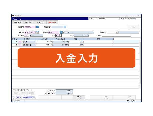 債権先毎に入金を一括入力し