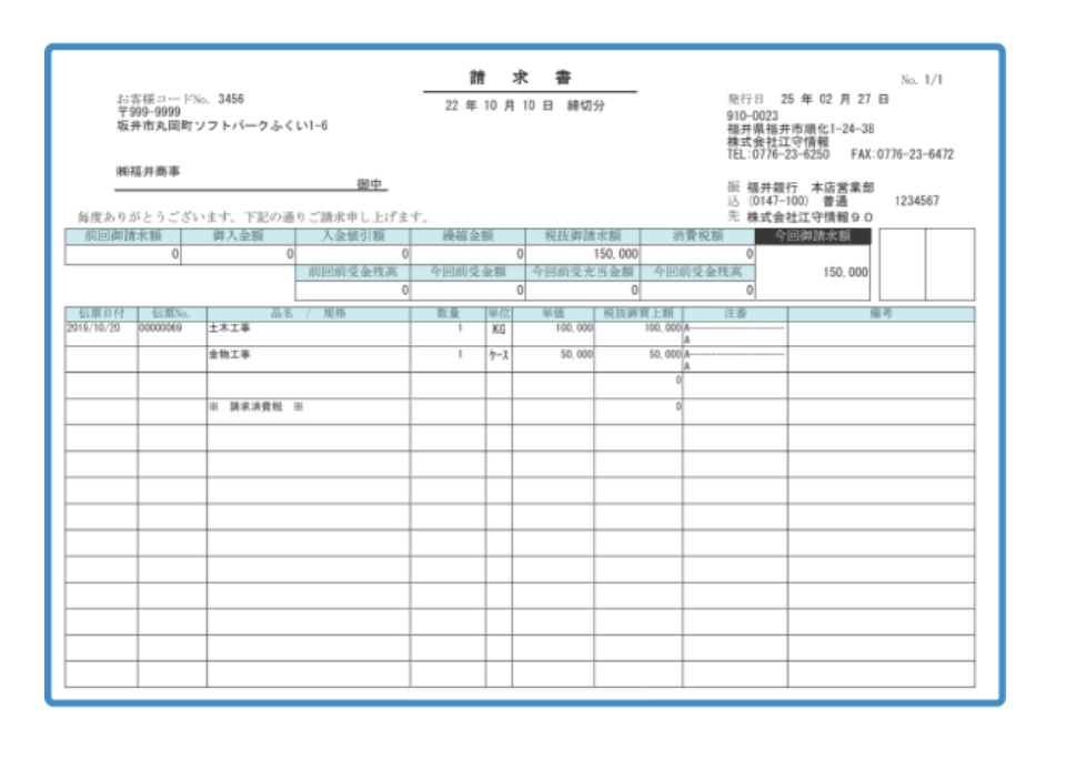 工事と物販をまとめた請求書を発行できます。