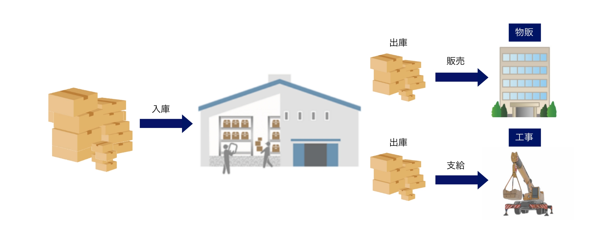 物販用と工事資材用で用途が異なっていても、在庫管理を分ける必要はありません。