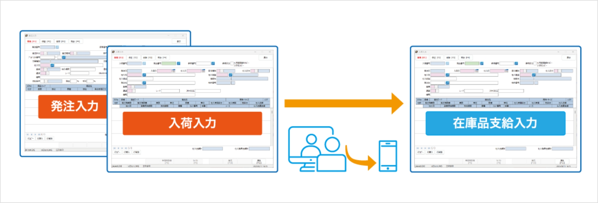 • ハンディターミナルを使ってピッキング、出荷準備を行うこともできます。