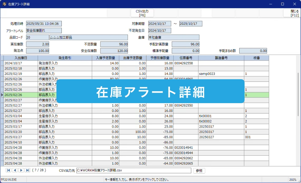 部材・中間品在庫に対し発注点管理をおこない、適切なタイミングで在庫補充がおこなえます。