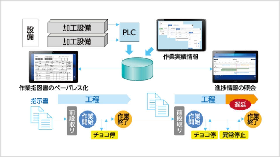 リアルタイムで進捗確認や生産状況を把握できます